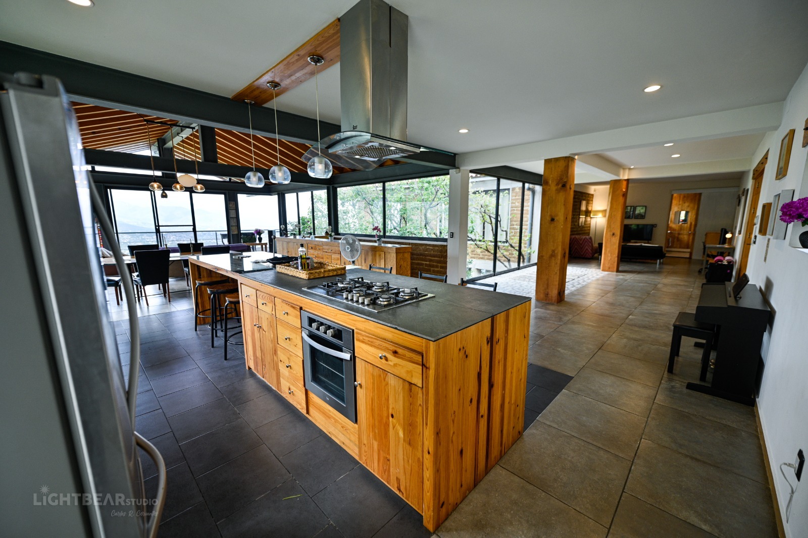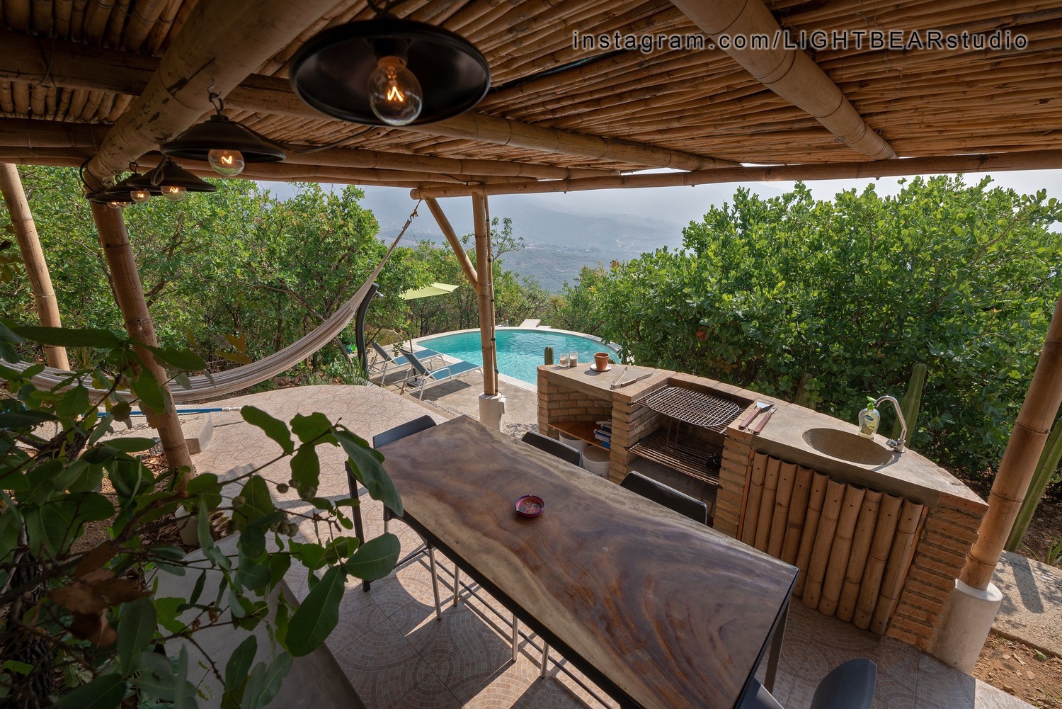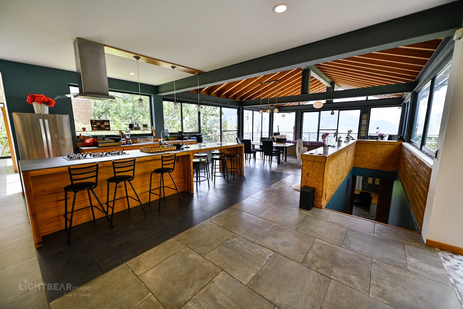 Disfruta de Casa del Bosque, una casa de espectacular diseño enclavada en el bosque a sólo 15 minutos del centro de la ciudad. Tu acogedora y confortable habitación está hecha de adobe, una piedra natural que la mantiene fresca, y podrás ducharte bajo un techo de cristal. La casa, compartida con dos suites, incluye una cocina totalmente equipada, elegantes áreas de estar y comedor y una amplia terraza con impresionantes vistas panorámicas. Las comodidades especiales incluyen un piano, guitarra, sistema de sonido de alta calidad y televisor de pantalla ancha, a veces compartido con otros huéspedes. Con suerte, las otras dos suites quedarán vacías y podréis disfrutar de toda la casa.