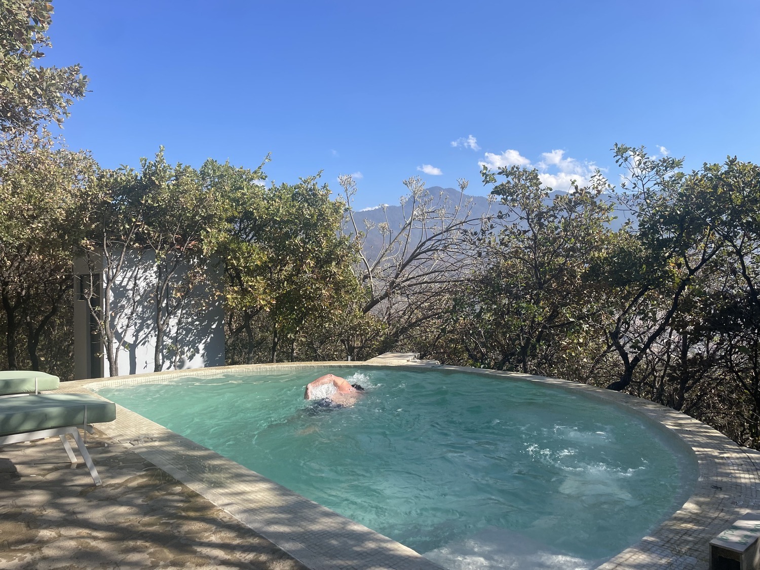 • Alberca climatizada con energía solar, hidromasaje y serpentina (corriente para nadar)