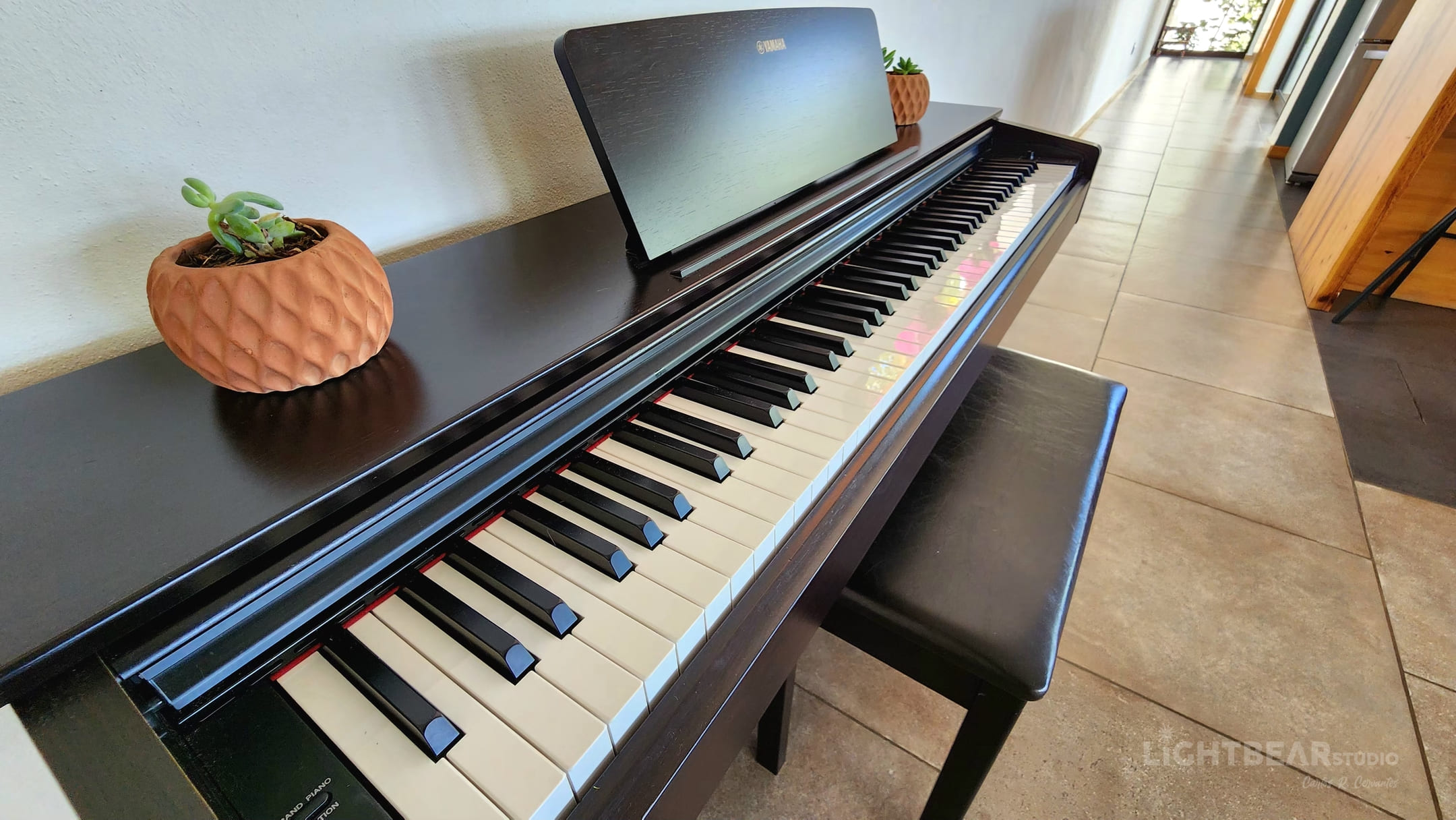 • Piano, guitarra, tapetes de yoga, binoculares, biblioteca, obras de arte
