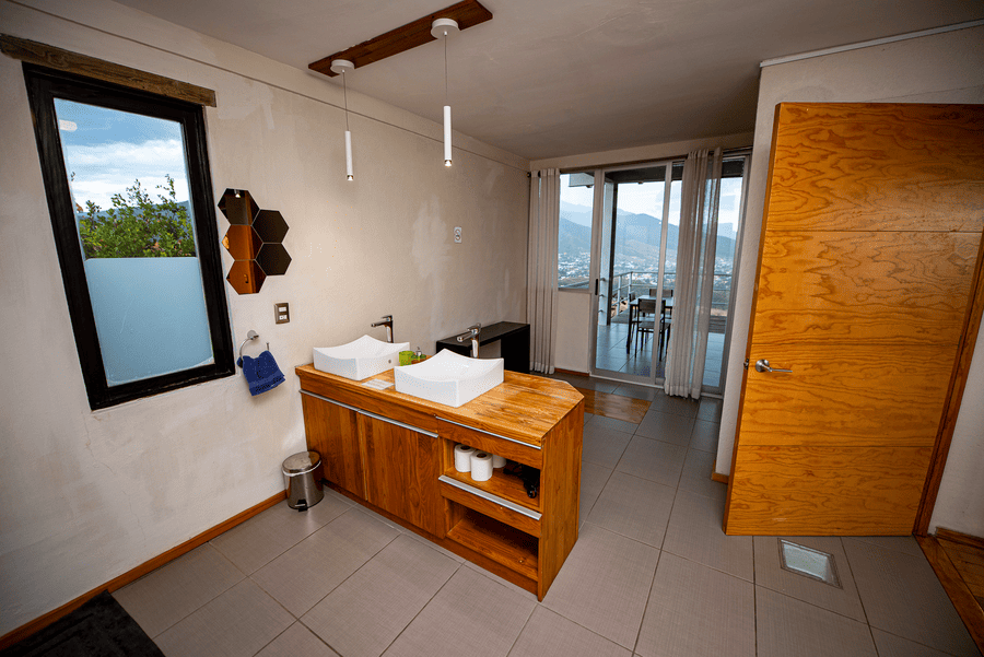 Casa Horizonte ofrece una conexión íntima con la naturaleza, ubicada en una colina, a solo 15 minutos en coche del centro de la ciudad. Este refugio de dos pisos cuenta con una acogedora sala de estar con Smart TV en la planta baja y una cocina totalmente equipada y amplias habitaciones en la planta superior con impresionantes vistas del valle, las pirámides y el amanecer y el atardecer.