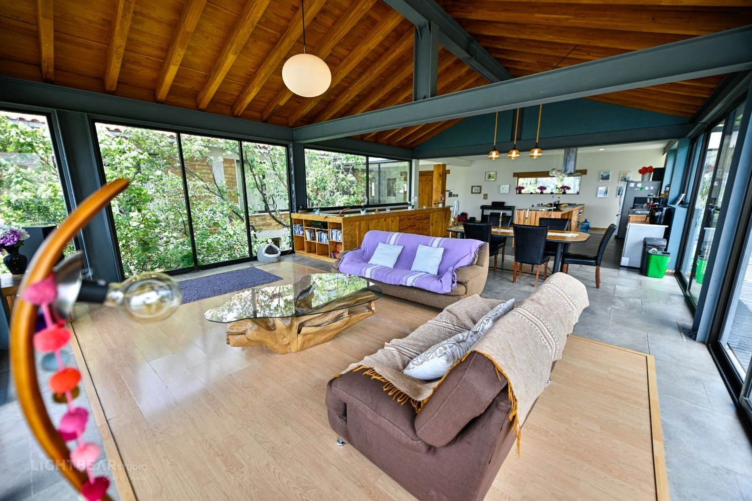 Enjoy your stay at the “Floating Suite” in Casa del Bosque, the crown jewel of Utopía, a stunning house nestled in the forest just 15 minutes from the city center. Your unique and spacious bedroom boasts a glass floor, revealing the forest canopy below. The house, shared with two other suites, seamlessly flows from the fully equipped kitchen to the elegant dining and living areas, leading to an expansive deck with breathtaking panoramic views. Special amenities include a piano, guitar, a sound system, a widescreen TV, and the heated pool with hydromassage and serene garden.